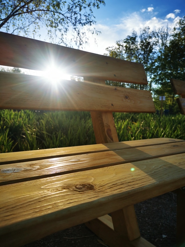 Am besten geht es beim gemeinsamen Plausch in der Abholsituation, auf einer einladenden Freundschaftsbank!