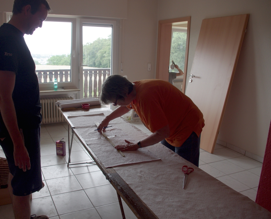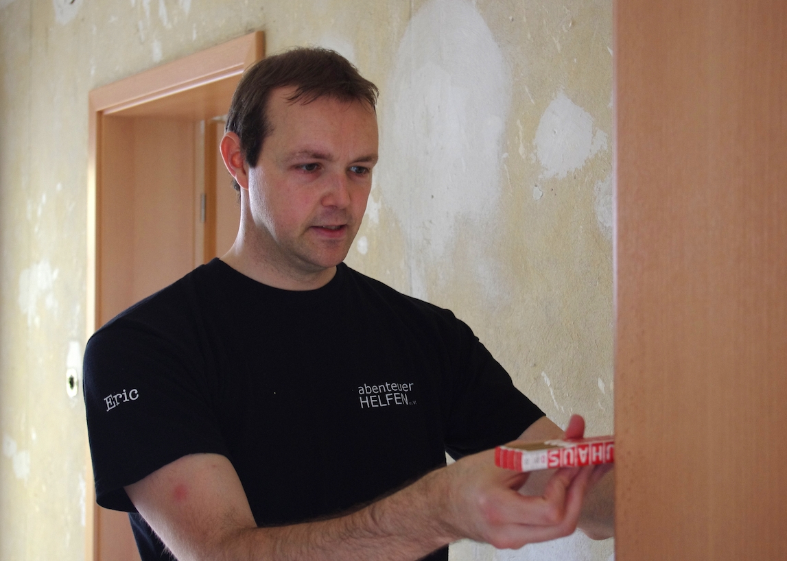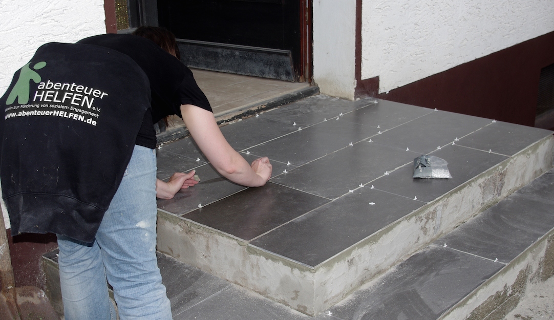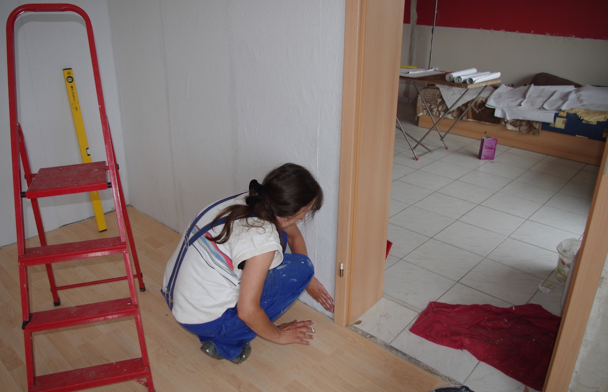 Arbeiten, die im Ludwigshof anstanden und bei dem Einsatz von abenteuer HELFEN e.V. angegangen wurden, waren unter anderem Tapezieren, Streichen, Dampfreinigen, Laminat verlegen und Fliesenlegen.
