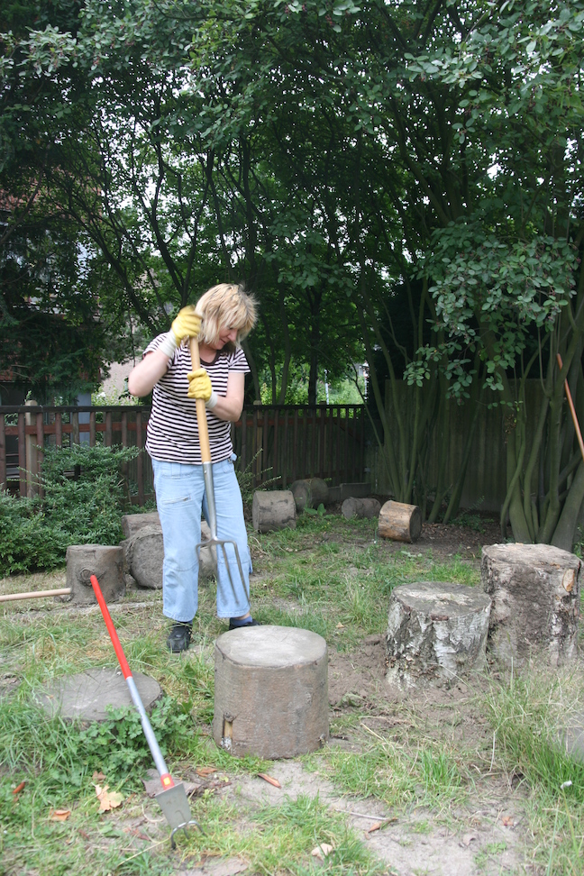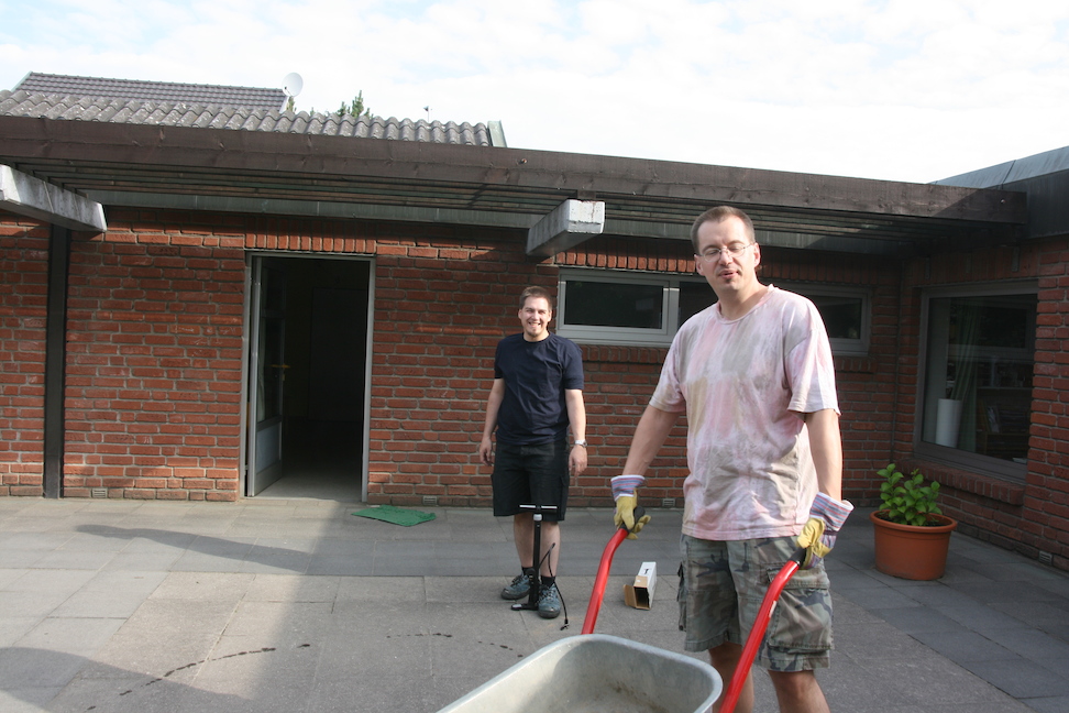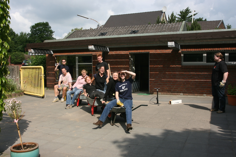 Mit Schaufeln und Schubkarren bewaffnet ging es morgens um 8:30 Uhr los, frisch gestärkt natürlich, vom Frühstück in der Tagesstätte.