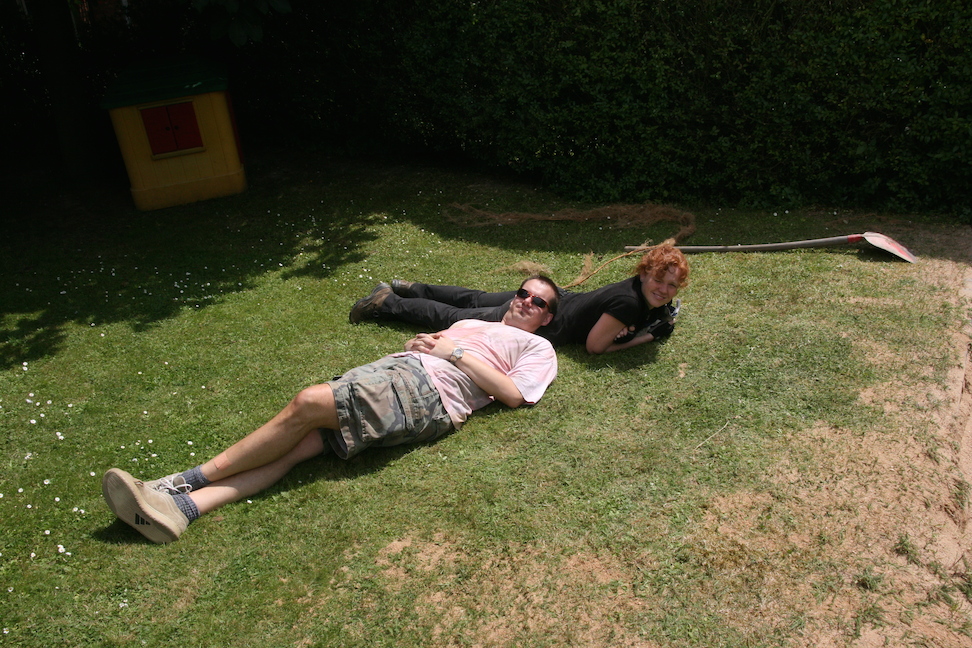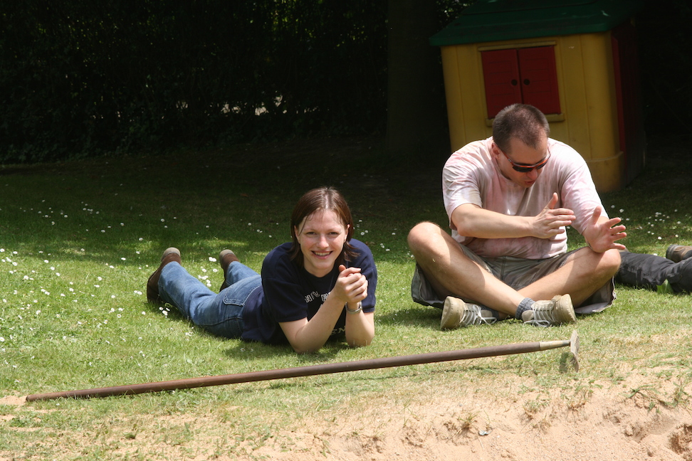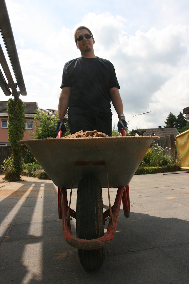 Schaufel um Schaufel, Schubkarre um Schubkarre, und mit einer Menge Motivation wurde der Sand dann auch wirklich immer weniger.